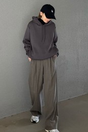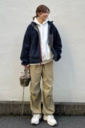 ゆるっとしたオーバーサイズのプルオーバータイプが今のトレンド。地厚でフードが目立つデザインなら、よりリッチ感がアップ。カッコよく着たい人はメンズを取り入れるのも手です。
