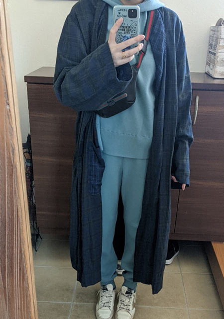 こちらは上記のプルオーバータイプ。“今っぽさ”を重視するならやはりプルオーバーが近道♪