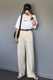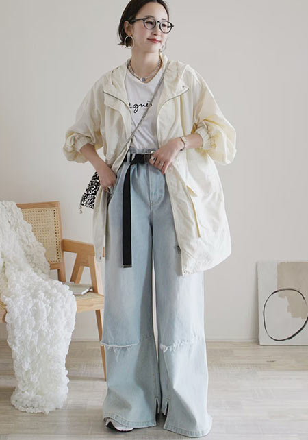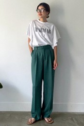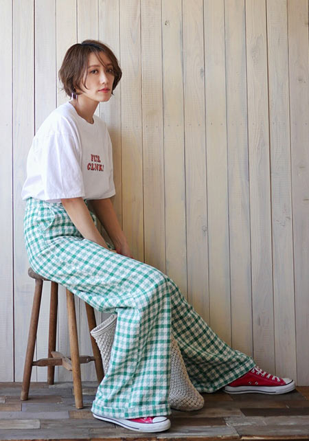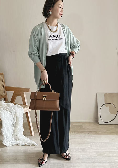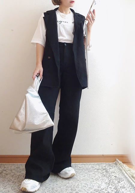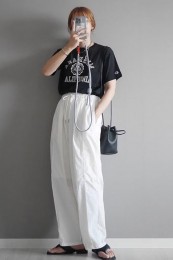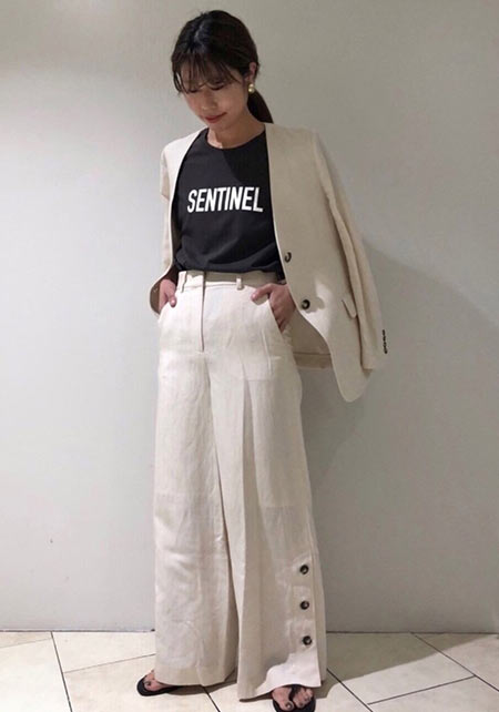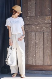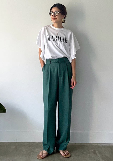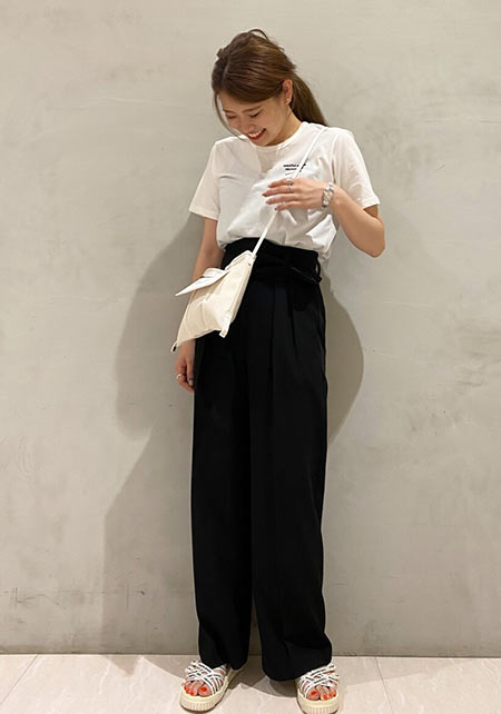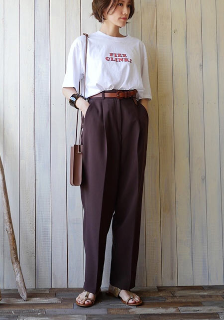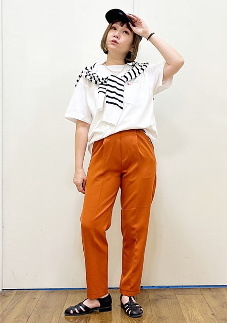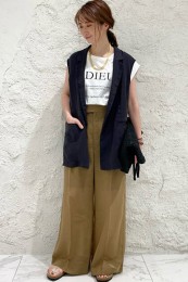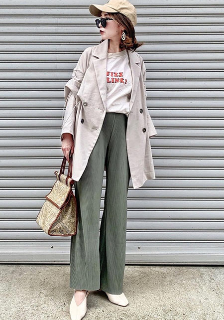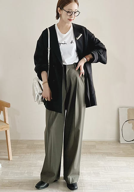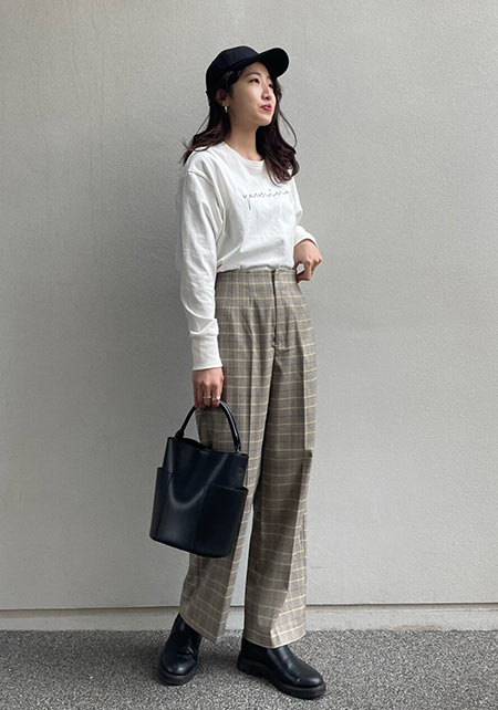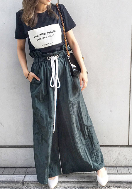 「普通のパンツ×ウエストイン」もいいですが、鮮度を上げるならトレンドのワンドパンツがベスト。