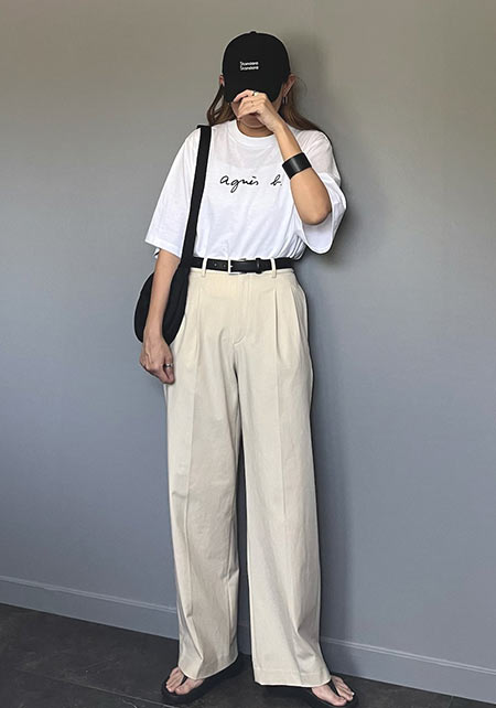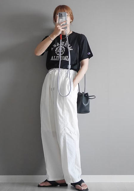 Tシャツって差が出にくいアイテムだからこそ、“ボトムで変化をつける”のがオシャレに見えるコツです。