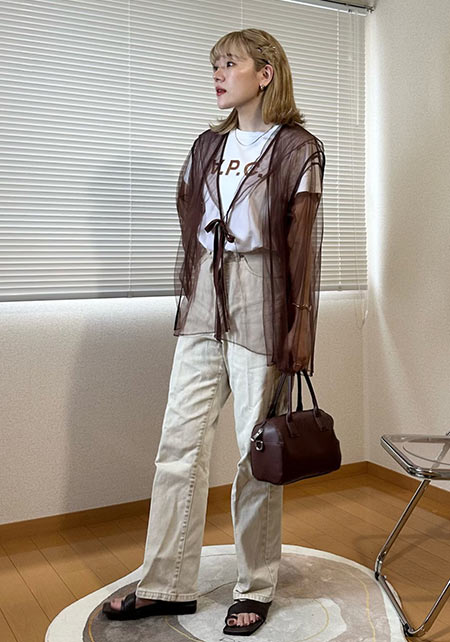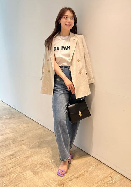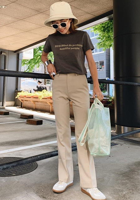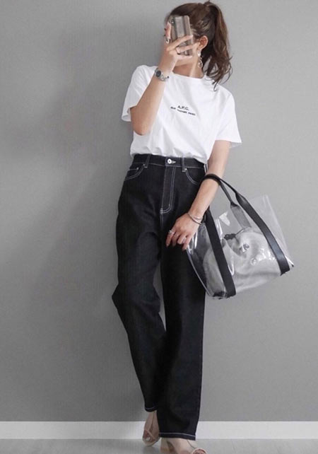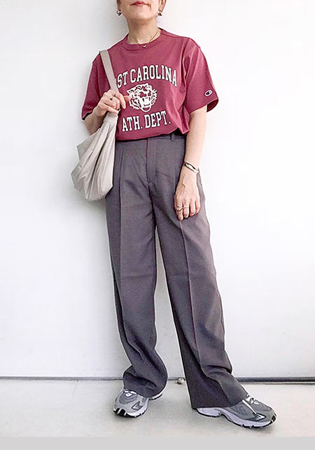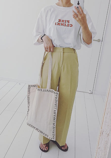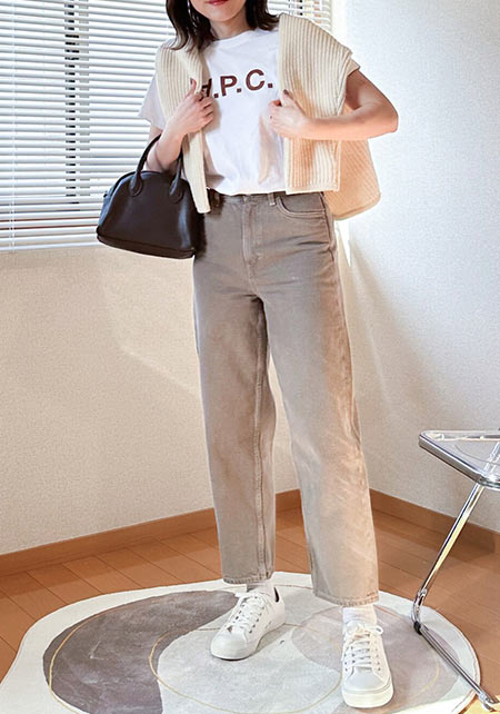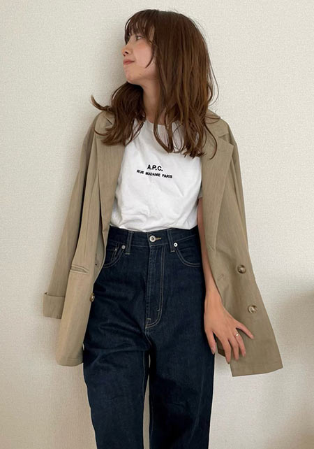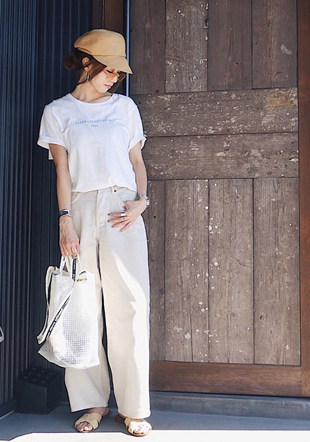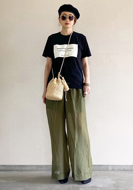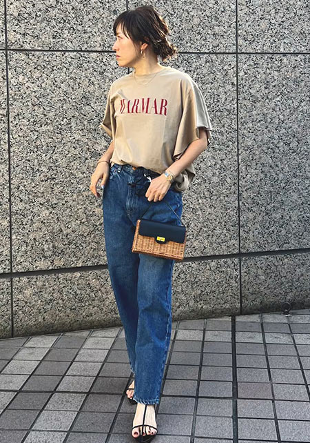 アニエスベーのロゴTシャツ×素敵な大人の着こなし