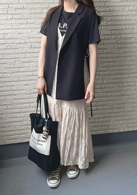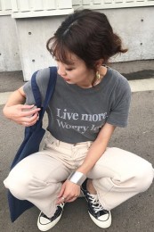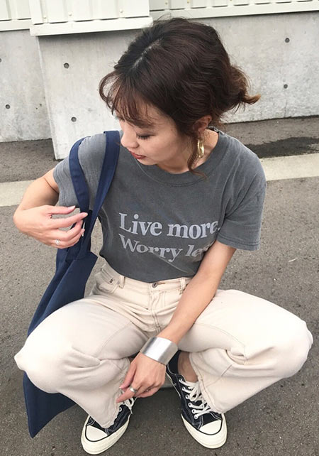さりげなくアクセントになる小物(ピアス、ブレスレット、腕時計やバッグ)を1点~3点取り入れると、よりこなれたTシャツコーデになれます!
