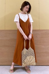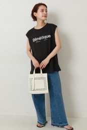 顔まわりを明るくするイエローは、ニュアンスのあるロゴでリゾート気分!