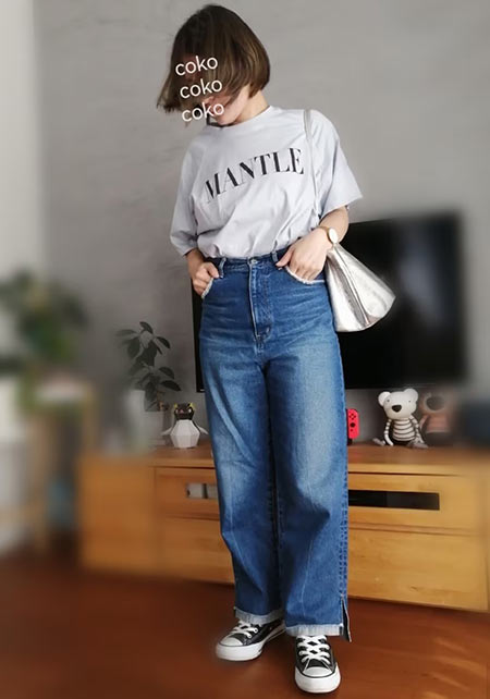 ルノンキュールのロゴTシャツ×素敵な大人の着こなし