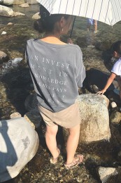 ロールアップ袖でメンズっぽさを高めたシンプルロゴT。