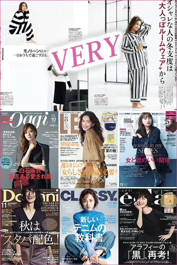 「VERY、Domani、GINGER、LEE、Marisol、eclat」など、30代~50代ファッション雑誌に掲載されたパジャマブランドを元にしています。