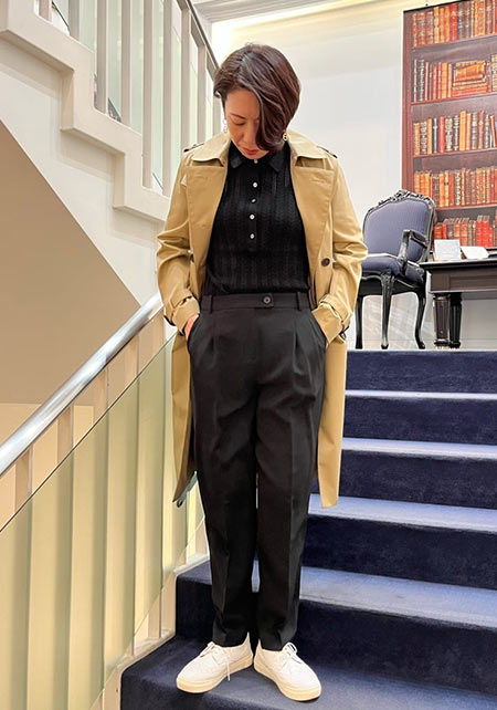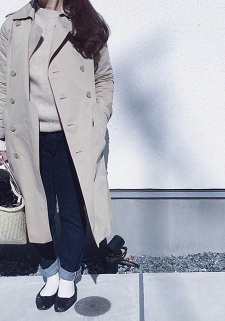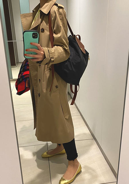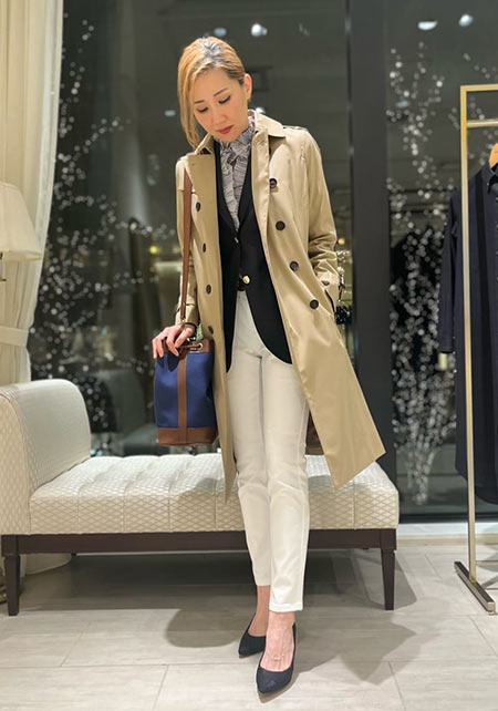 昨年、下見を重ねて品格トレンチを手に入れました。「昔からフレンチシネマ女優の着こなしが好きで、トレンチには強い憧れがありました。だからこそ、歴史ある『バーバリー』をセレクト。