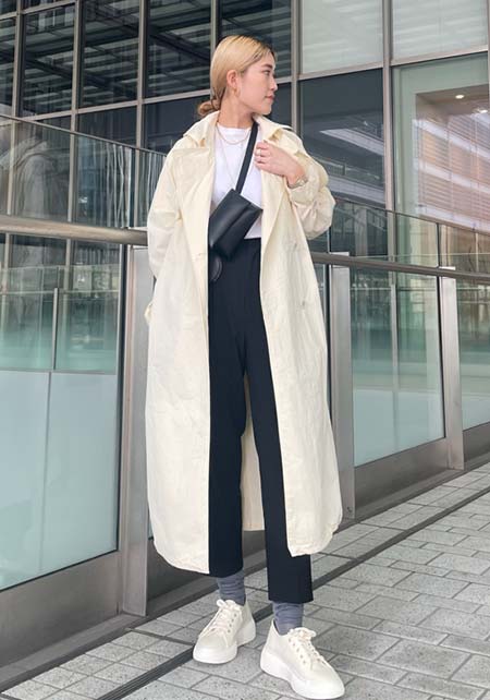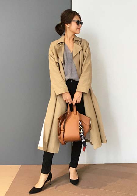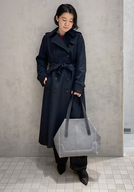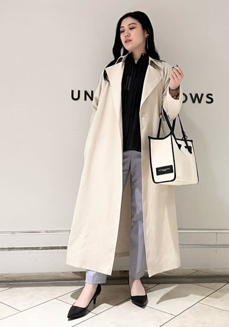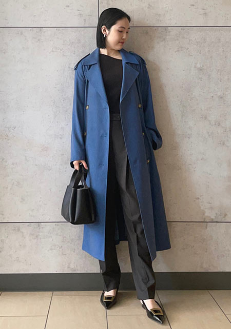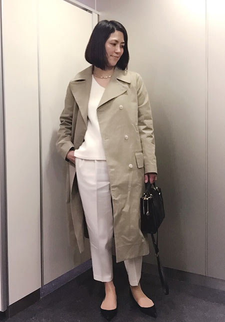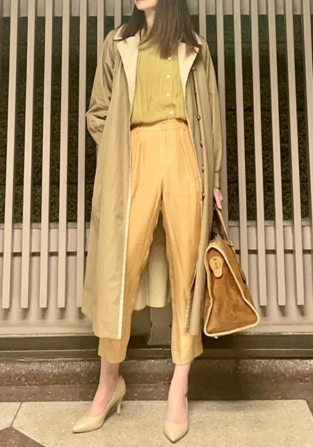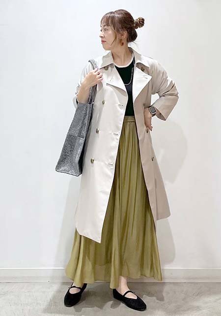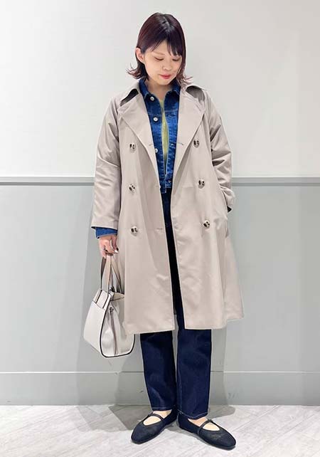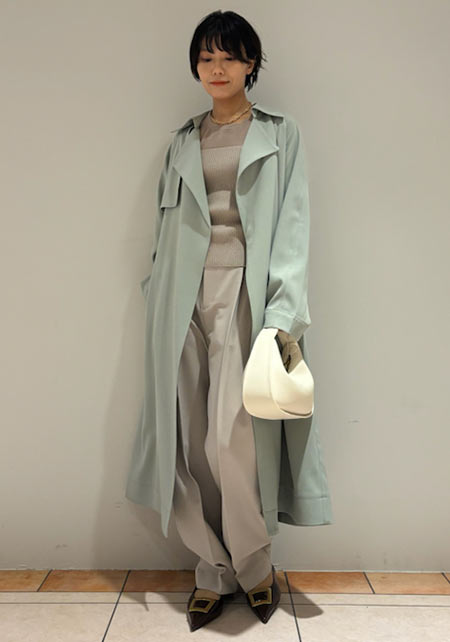 〈コーデ〉定番トレンチも、色やデザインを更新すれば、いつもの通勤スタイルが断然新鮮に更新できます。