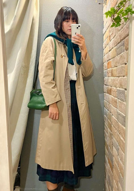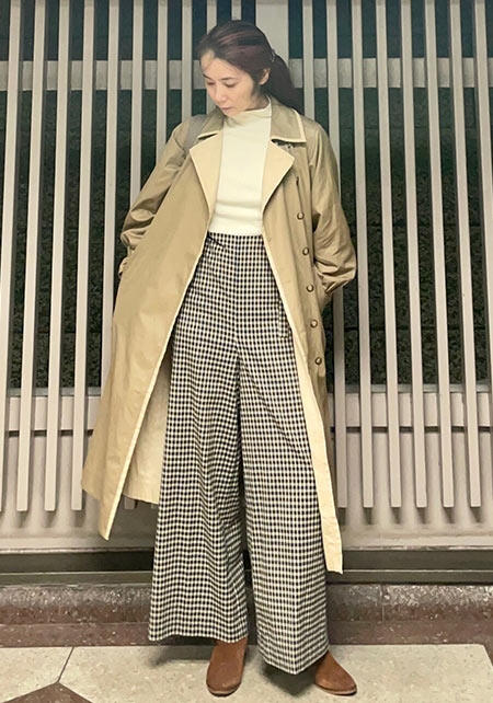 伝統あるトレンチコートを「チェック×チェック」で新鮮なイメージに。