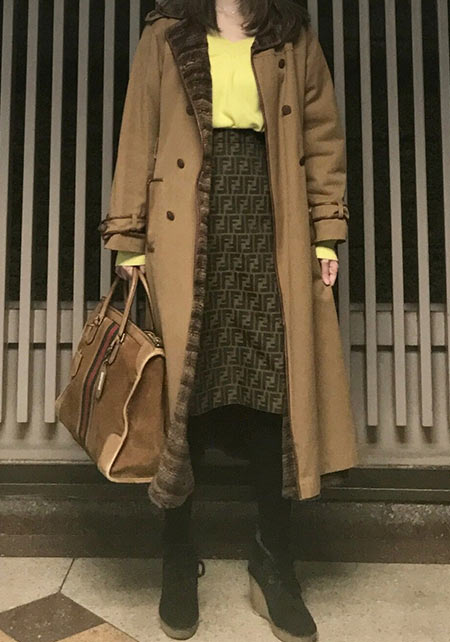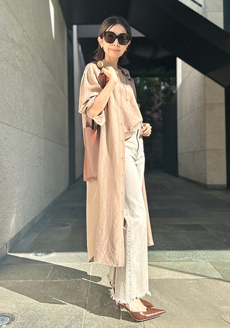 カジュアルでもシックでも、コーディネートに品を与えてくれるので、合わせるものに困らないのは格式あるブランドならでは! 自然と体になじんでできるシワや風合いを楽しみながら、末永く愛用していきたいと思っています」。