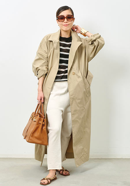 さらりと羽織るだけでサマになる美人顔トレンチ!