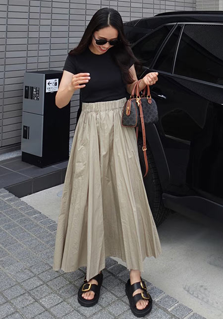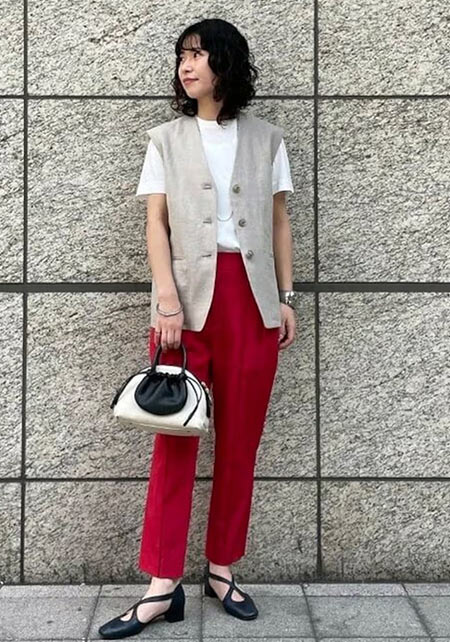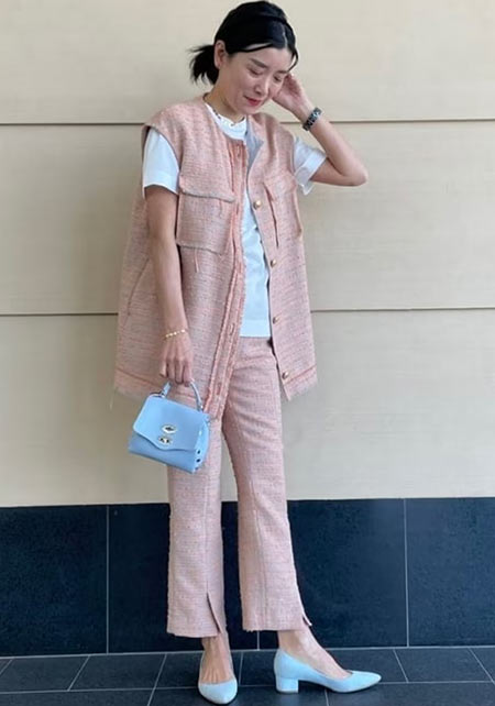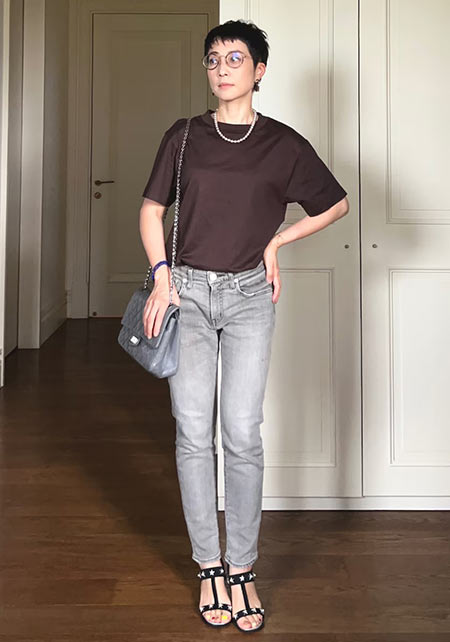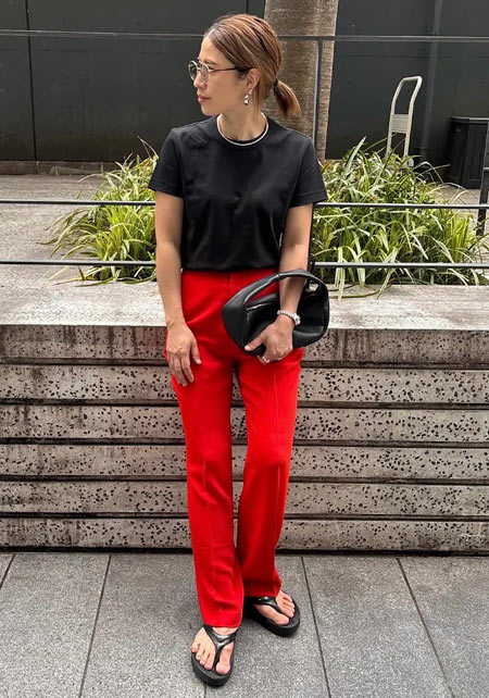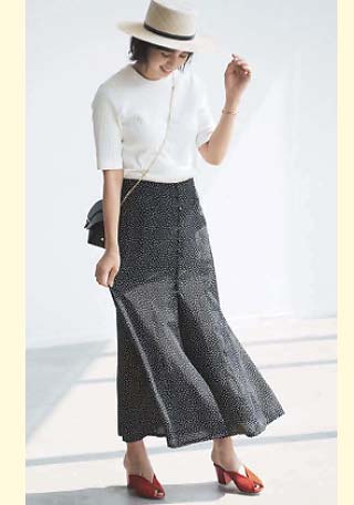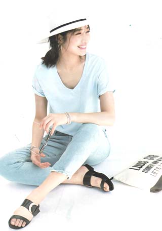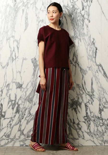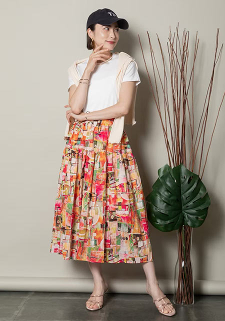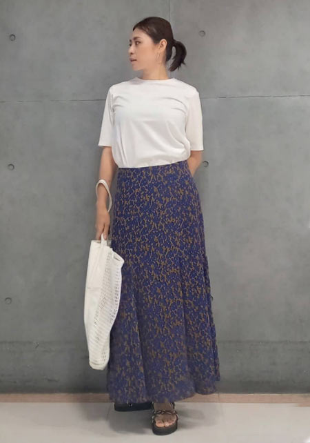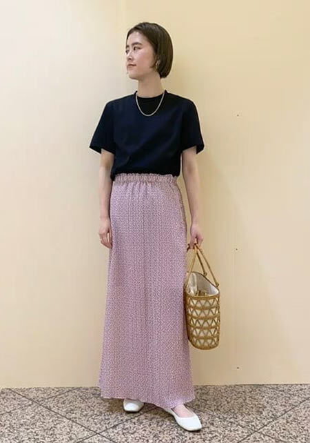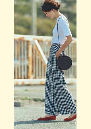 ママデザイナーが手がけるブランド『パリンカ』は、袖フリルなどの大人可愛いデザインが魅力。華やかで女らしさのあるTシャツが都会的フェミニンスタイルへ導きます。