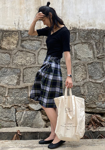 トレンドに敏感なママの間で密かにヒットしている注目ブランド。ボーダー×フリルやブロックチェックなど、甘ディティールと後ろ下がりのゆるシルエットがお得意。いつものスタイルがおしゃれに早変わりします。