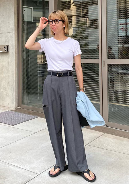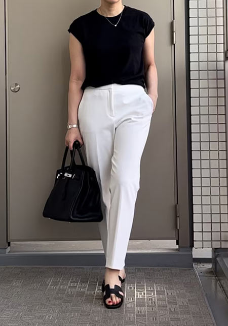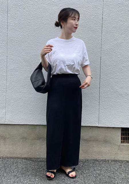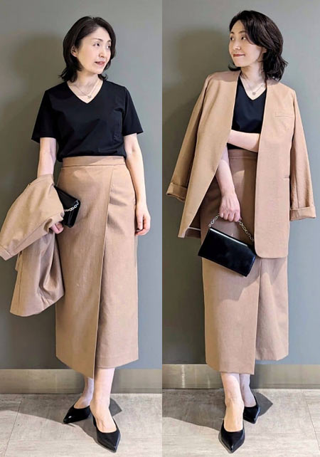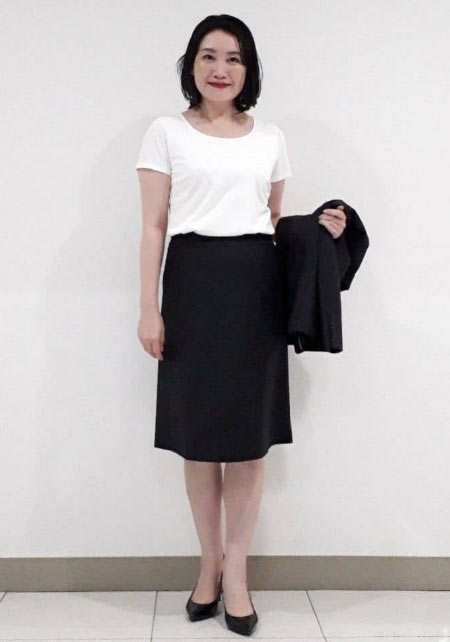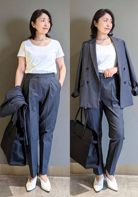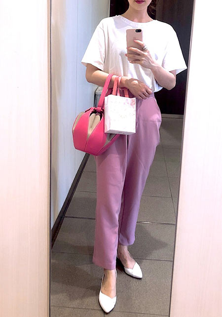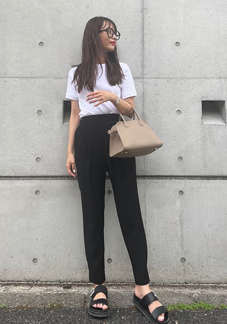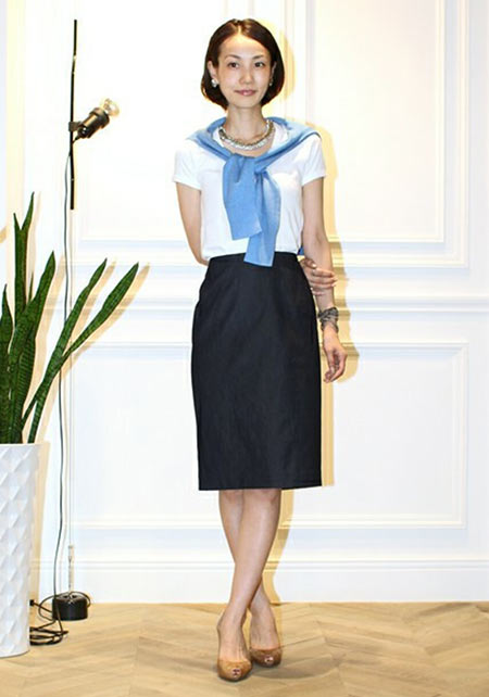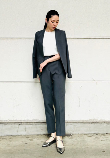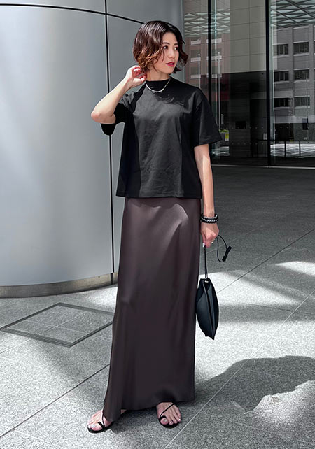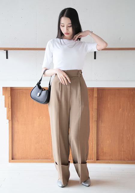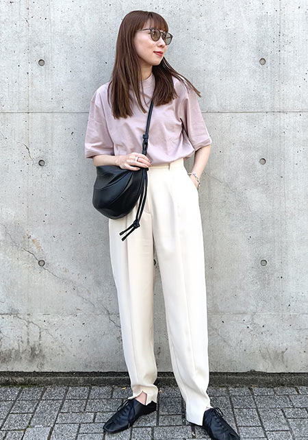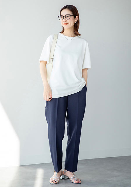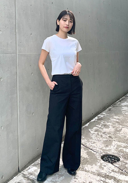 Tシャツもオフィス使いに最適な品のよさが自慢。シャキっとした正統派のキャリアウーマンを演出してくれます。