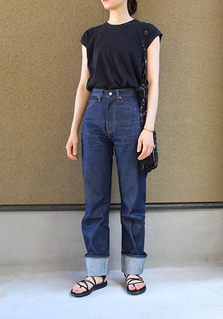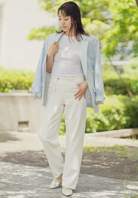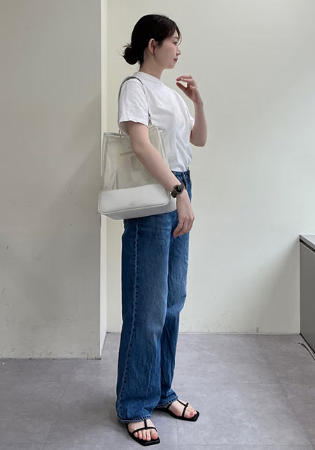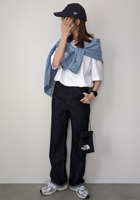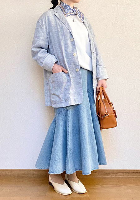 スラブ感のあるメンズライクさはデニムと相性◎ですが、女っぷりコーデの抜け感づくりにも欠かせません。
