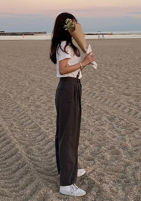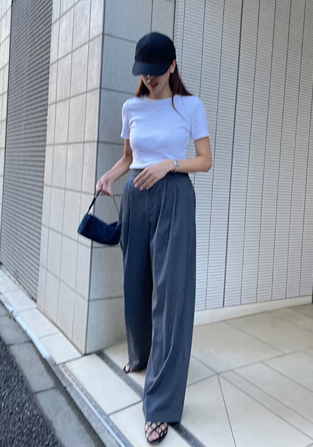 このリブTシャツは、大人の体をきれいに見せる絶妙な素材感とシルエットで、おしゃれプロの間でブームになりつつある新名品。通勤からデートにまで使える着まわし力もすごい!
