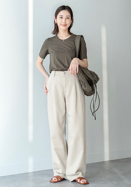 Tシャツは上質素材ときれいなカッティングによる品の良さが。オフィスや通勤でも好印象まちがいなし!