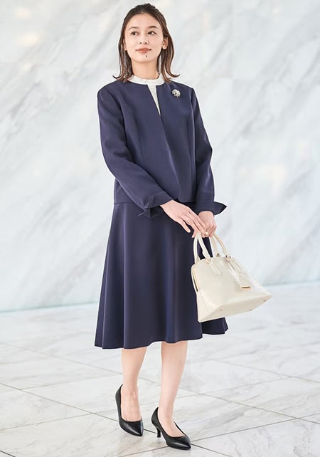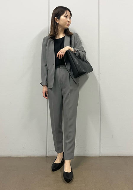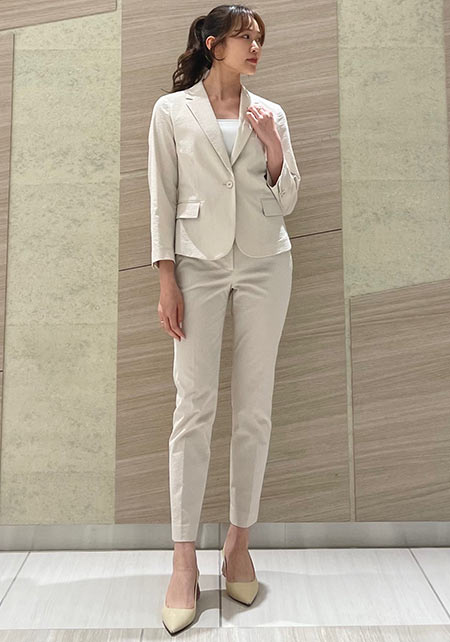 スッキリしていて品のある、着回しやすいスーツが揃います。