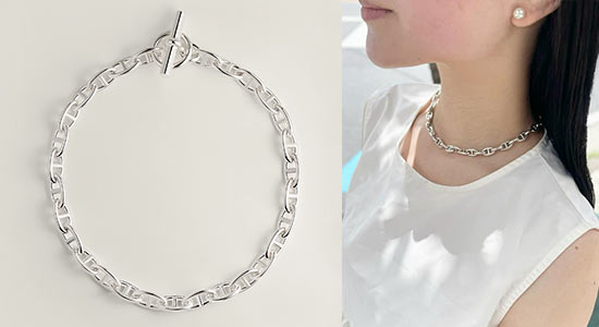 エルメスを代表するシルバージュエリー「シェーヌ・ダンクル」のネックレス。