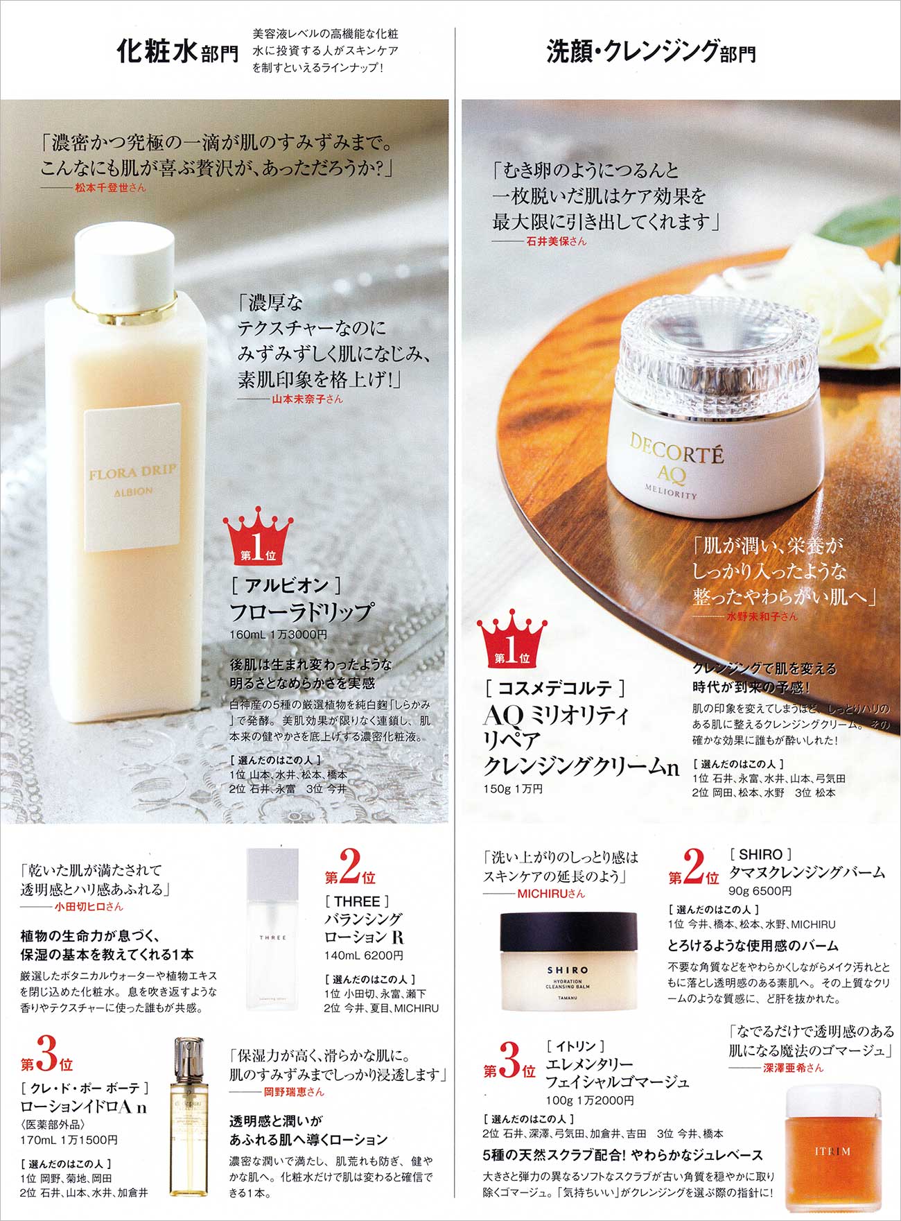 40代女性に人気の化粧水ブランドランキングページです。