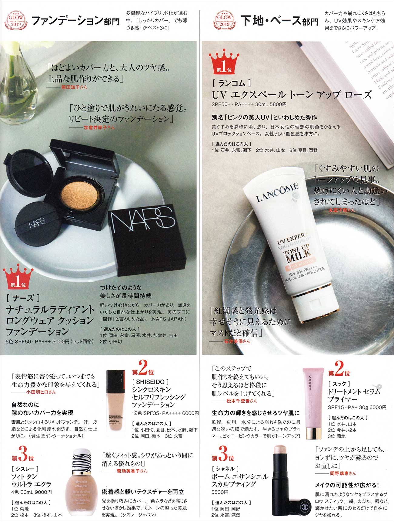 40代向け美容誌「美的GRAND、美ST」と、40代女性向けファッション誌「GLOW、Marisol、VERY、LEE 他」に掲載された化粧品ブランドを元にしました。