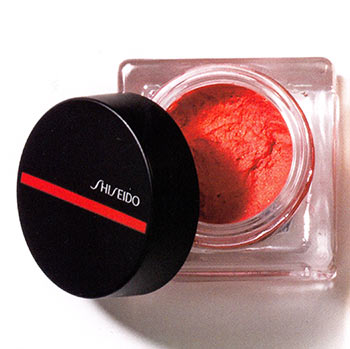 メイクの色を選ばないコーラルピンク。ドライで使うとふんわりと肌になじみ、付属のブラシに水を含ませて使うと、クリアで艶のある発色に。