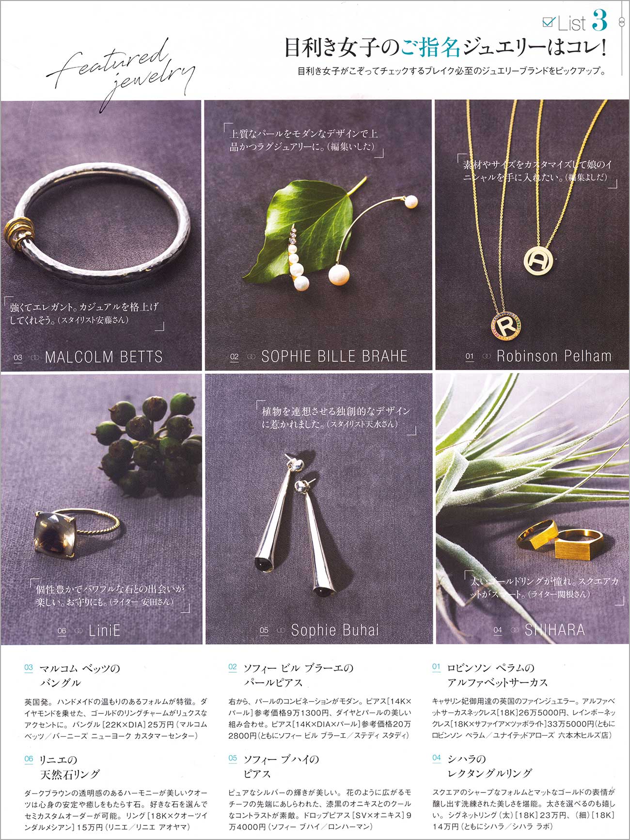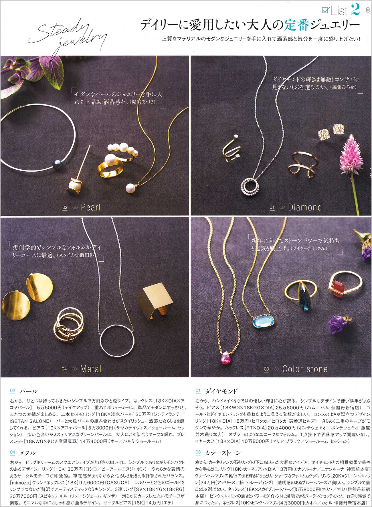 40代女性向けのファッション誌「GLOW、LEE、Marisol、VERY、Domani」などに掲載されたアクセサリーランドを元にしています。