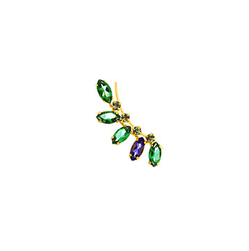 耳のふちを沿うようなフォルムが新鮮なピアス。天然石を使用したビジューがしっとりと落着いた印象を与えます。