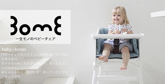 bomeは、国内の大手ベビー用品メーカー「KATOJI」のオリジナルブランド。名前は“baby+home”が由来で、木の温もりが感じる、暮らしに馴染むデザインの家具をラインナップしています。