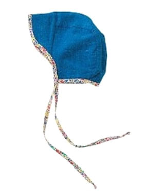 ボンネットはかわいいけれど、日焼けも気になる。そんなママでも安心なひさし付ボンネット。質の良いオーガニックコットンで作られており、美しいシルエットも特徴。何にでも合わせやすいデニム生地に花柄の紐がアクセント