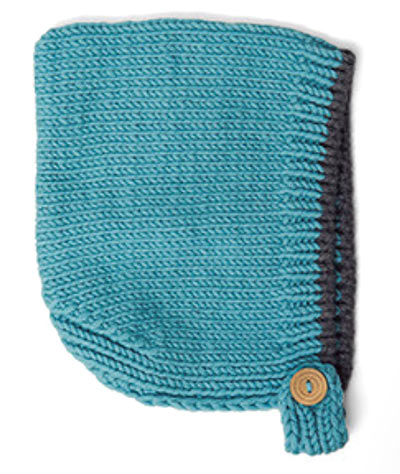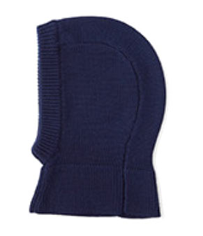 定番デザインのニットキャップ。首まで覆われるようなデザインになっているので風を通しにくく暖かい。ネイビーのほかグレーもあり。62 / 68cm~80 / 86cmの2サイズ展開。