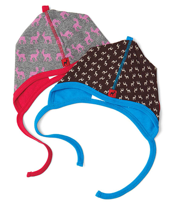 トレードマークのトナカイがプリントされたベビーキャップ。フィット感のあるシルエットだけれど内側がコットンになっているので、かぶって心地いい。0 / 3~18 / 24カ月のサイズ展開。