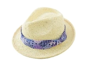 天然草を100%使用したカンカン帽子。通気性のよさはもちろん、南フランス、プロヴァンスのソレイアード社のプリント生地がアクセントとなっており可愛い。ゴムひも付きなので、遊びまわっても落とす心配がなく安心