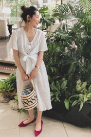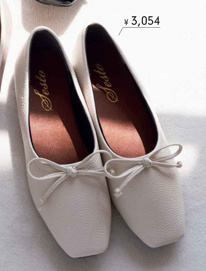 3.大きめのリボンが目を引く。オフホワイトが上品で大人な足元を演出。(セスト)