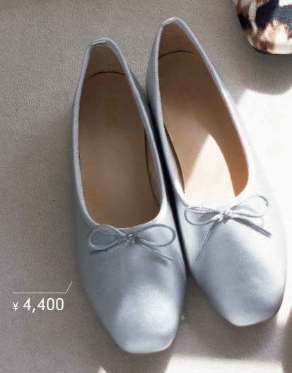 世界最古のバレエ学院の公式シューズを手掛ける、仏メルレ社のハンドメイドシューズ。はかなげなリボンはデニムなどで外したい。