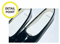 ちょこんと付いた繊細なリボンに、さりげなくPRADAロゴを配した大人可愛いバレエ。控えめながらも高級ブランドの“それ”と分からせる、プラダらしいデザイン。