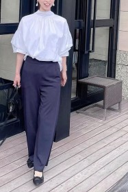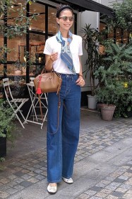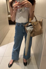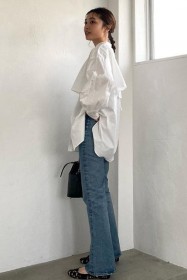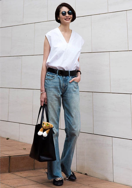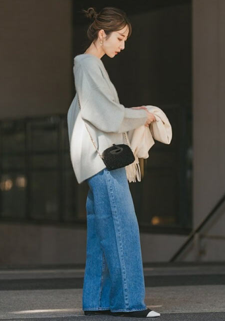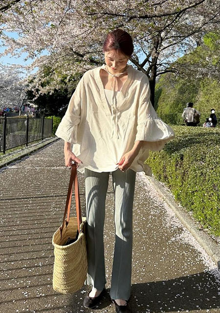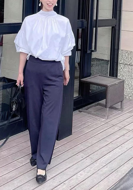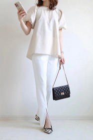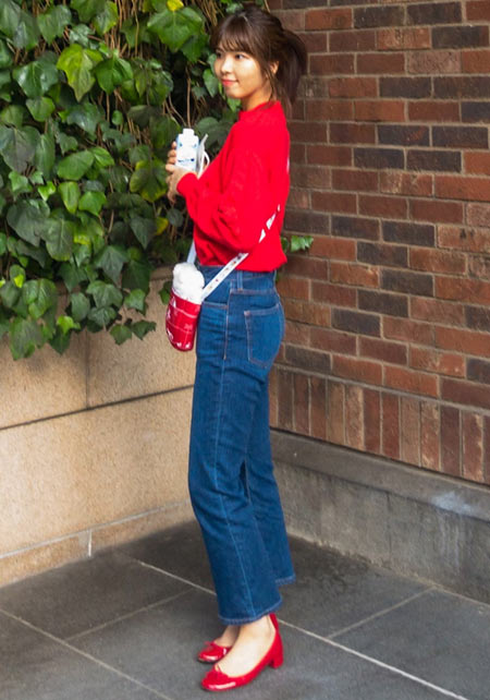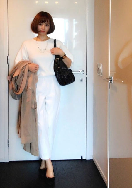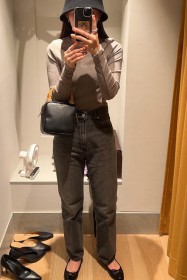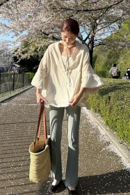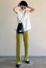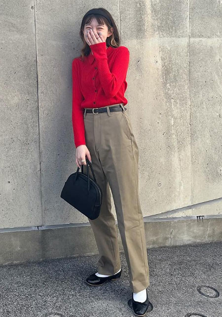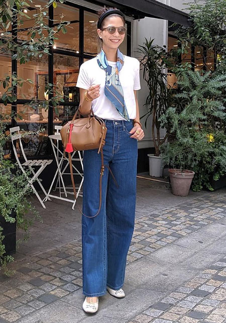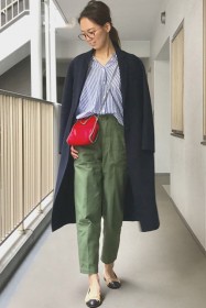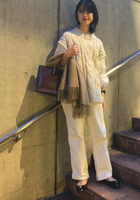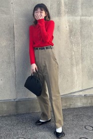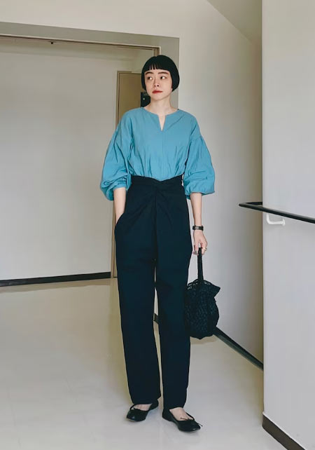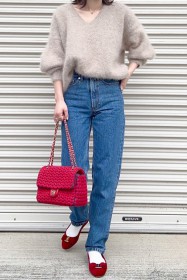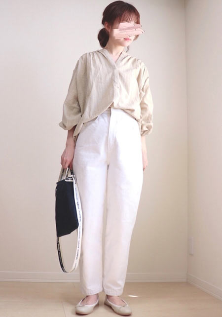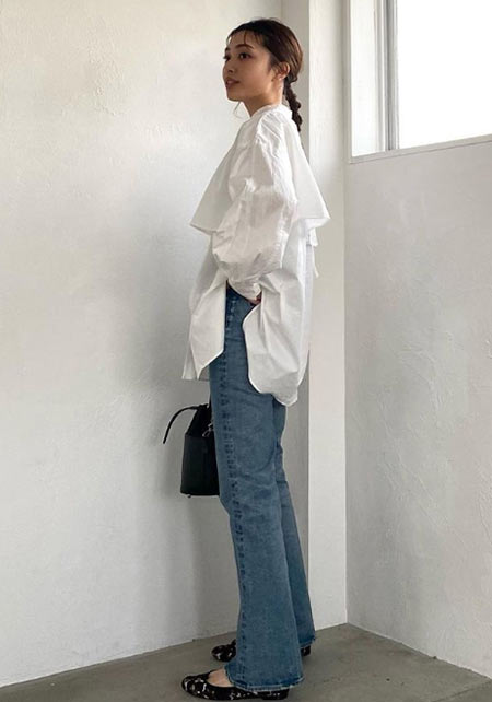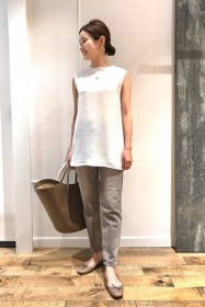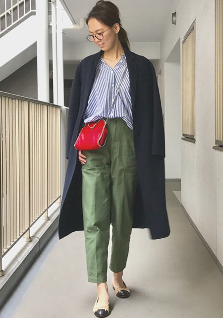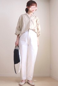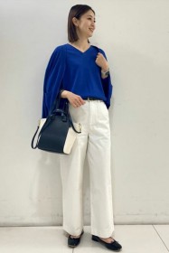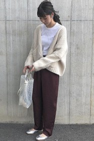 〈コーデ〉カジュアルなパンツスタイルもハイブランドのバレエで高級感を足せば、友人とのランチにも。