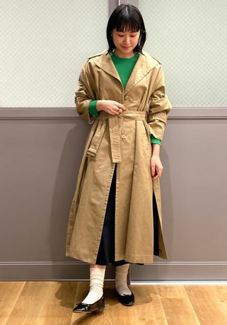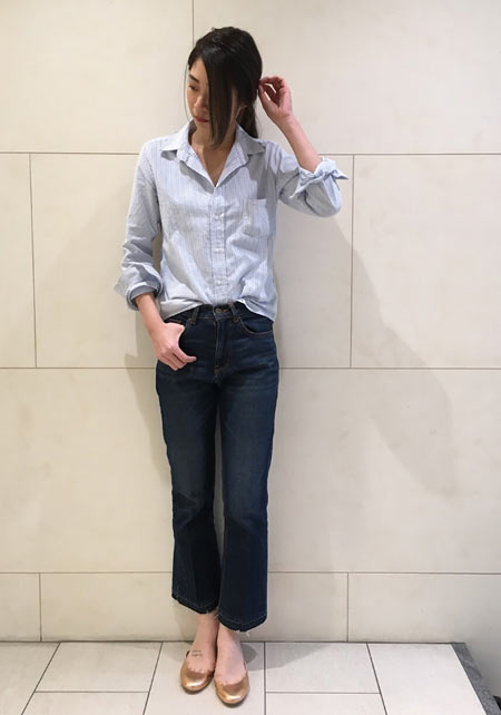休日も仕事の日も最近はぺたんこ派の私。大人可愛いデザインが特徴のツルは、甲浅なラウンドトゥのバレエシューズをオーダー。他にも色や素材の展開が多く、今年っぽくおしゃれを楽しめるスクエアトゥなどもあります。