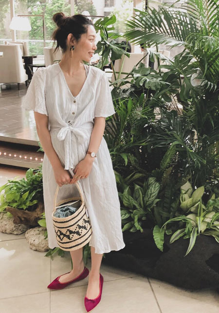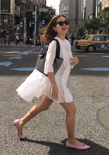 抜群の履きやすさと手頃な価格で、リピーター続出中のバレエシューズ。丸みを帯びたラウンドとギンガムチェックがコーディネートにフェミニンさを添える。