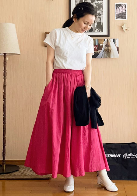 とにかく楽ちんです。シンプルで一見まったく主張がなさそうに見えて、実はコーデがこなれて1足で今っぽくなるから、もうボロボロなんですが、ついこればっかり履いちゃいますね。