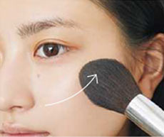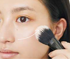 Bのパウダーファンデはブラシでふわっと軽く。内から外へ広げて自然にコントゥアリング。