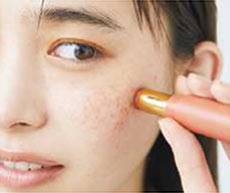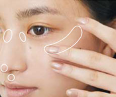 指先でCのハイライトをちょんちょん。目元や鼻先、鼻の付け根、唇の山にツヤ感をのせて。