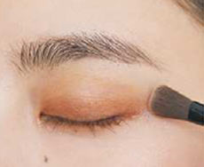 ふた重幅にD②のゴールド系のベージュをプラス。同トーンの2色でさりげないグラデに。