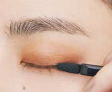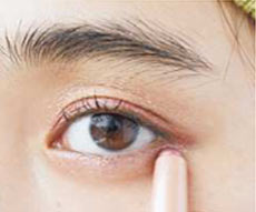 アイホールと下まぶたにD①のパールベージュを。ヌーディなきらめきで華やかさアップ。
