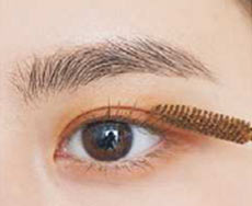 Aのピンクのパウダーは眉全体にふんわりと色付けるようにのせて。Bの眉マスカラで仕上げて完成!