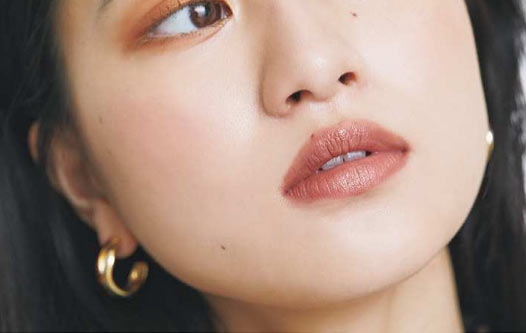 F.ツヤめくモカベージュでナチュラルでも女らしい口元に。