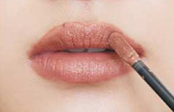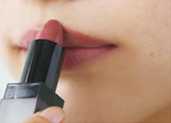 Fのリップは唇より少しオーバーに塗るのがポイント。自然なツヤとぽってり感で色っぽく。