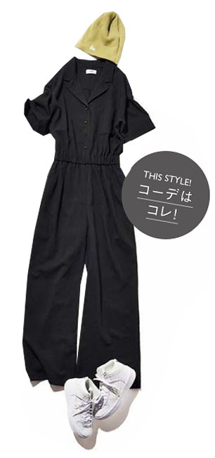 ワーク系女子を気取れるALLブラックのつなぎが主役!