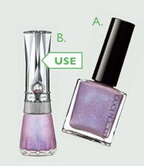 指先が動くたびにきらめく偏向パールのときめきにキュン?おすすめはシアーな発色のパープル系。甘すぎず強すぎない感じがメンズっぽ服と見事にマッチ!