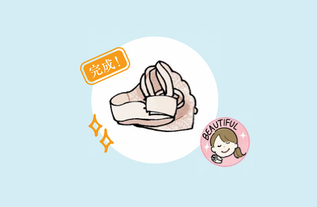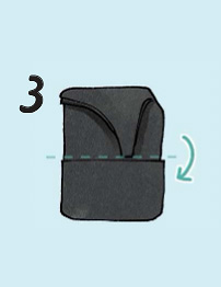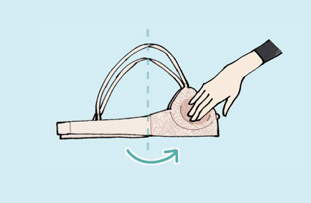 2.カップをへこませて、そのくぼみにサイドベルトを納めるように折りたたむ。